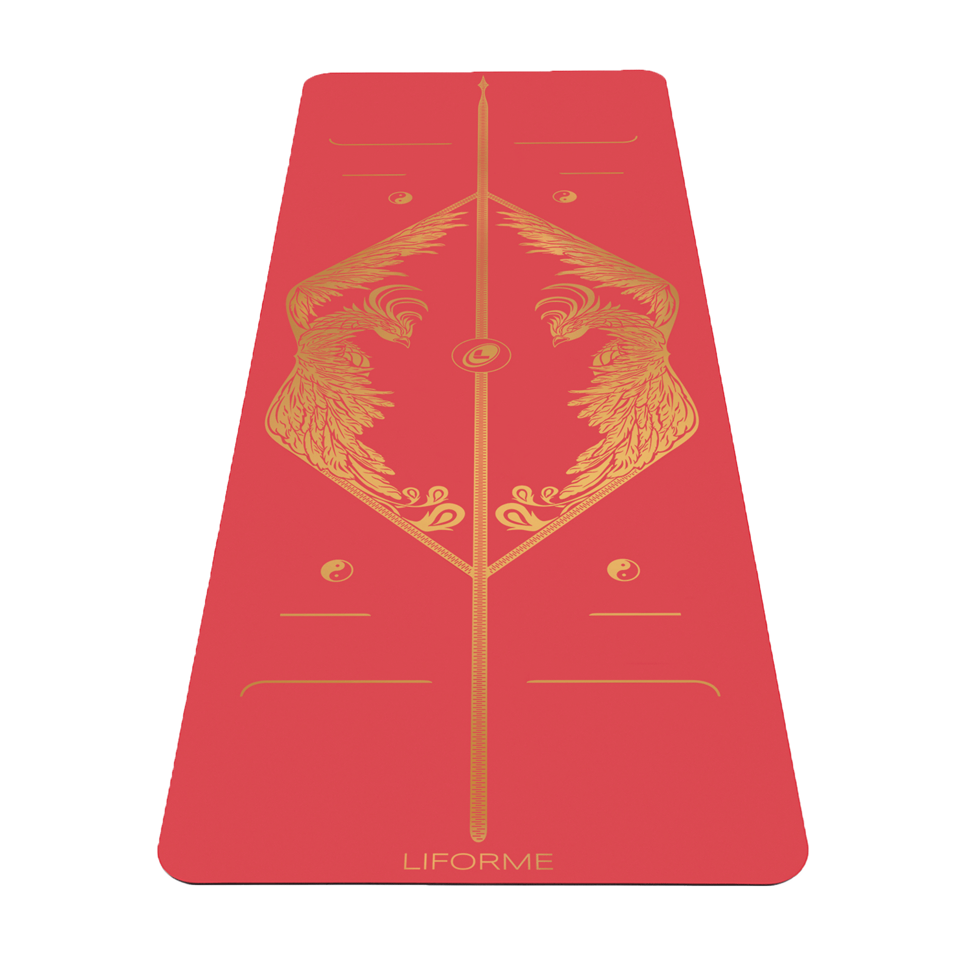The Liforme Dragon and Phoenix Yoga Mats brings harmony and balance to your practice. Set against our red surface, the mat features a striking gold posture alignment system, designed to guide you intuitively through each pose with improved posture, balance, and body awareness.