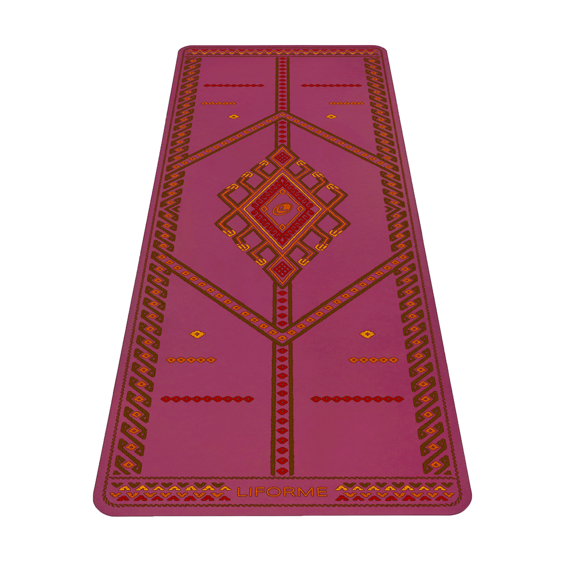 TRULY MAJESTIC. Welcome to the warmth and comfort of home, wherever you practice. Inspired by the beauty of traditional woven rugs, the Liforme Majestic Yoga Mat brings grounding energy and elegance to every flow. Choose from our rich maroon mat surface, featuring our Majestic in deep reds, oranges, yellows, and browns, or our golden sand mat surface, printed with soothing olive green, orange, and yellow hues.