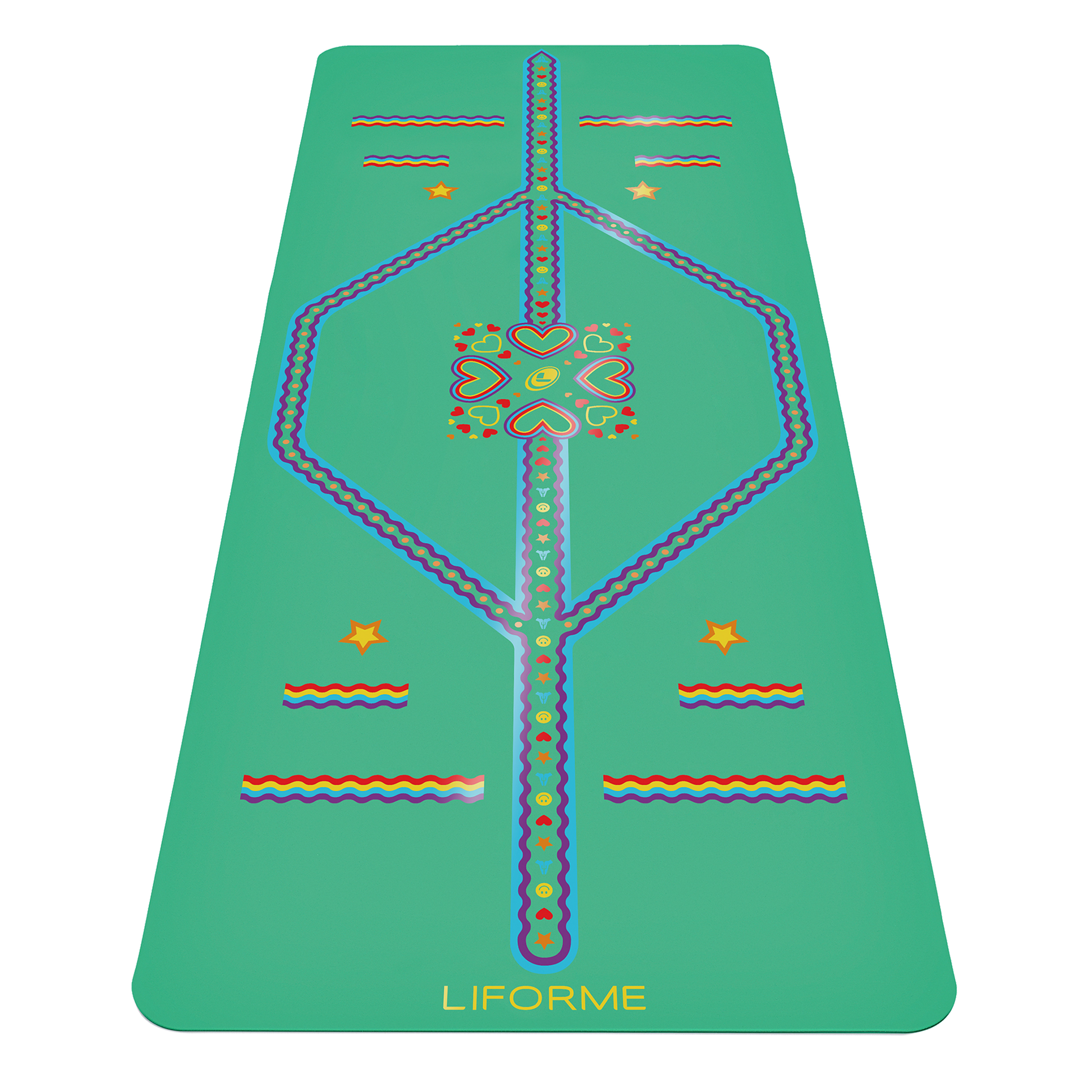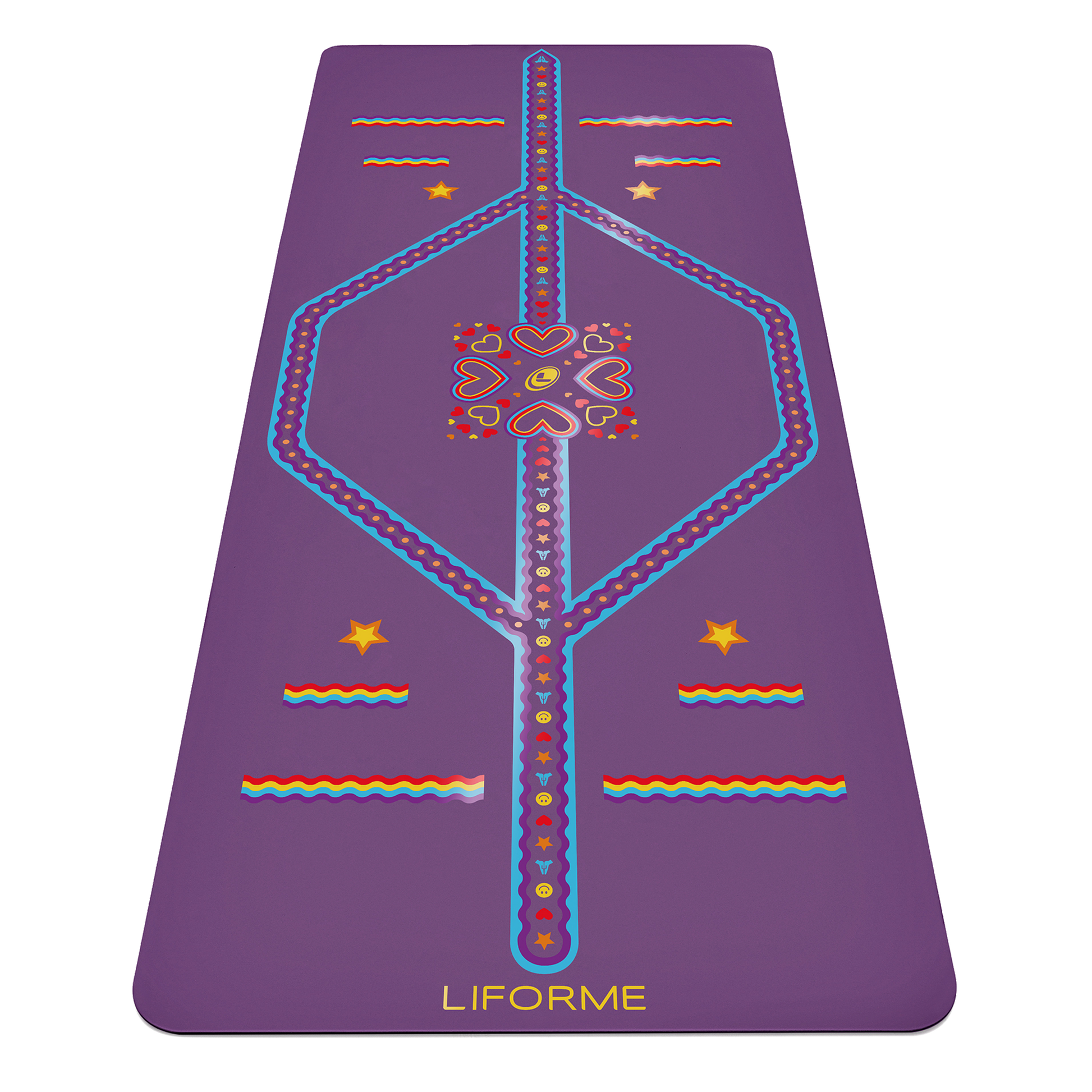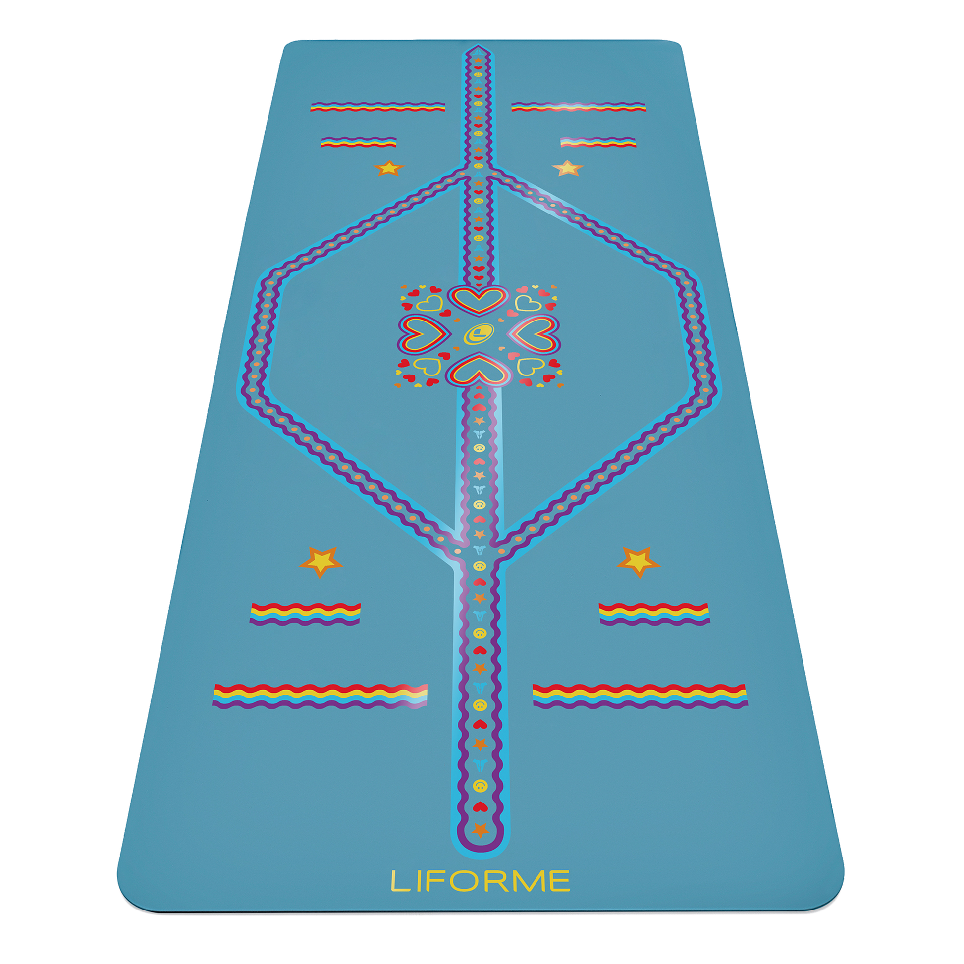 The Liforme Kids Playful Yoga Mats are recommended for kids up to 140 cm (4 feet 7 inches), available in 7 base surface colours each with a Playful printed alignment guide, which features hearts, stars, and wiggly rainbows. Planet friendly and non-toxic they are completely safe to touch, smell, and even lick (these things happen!).