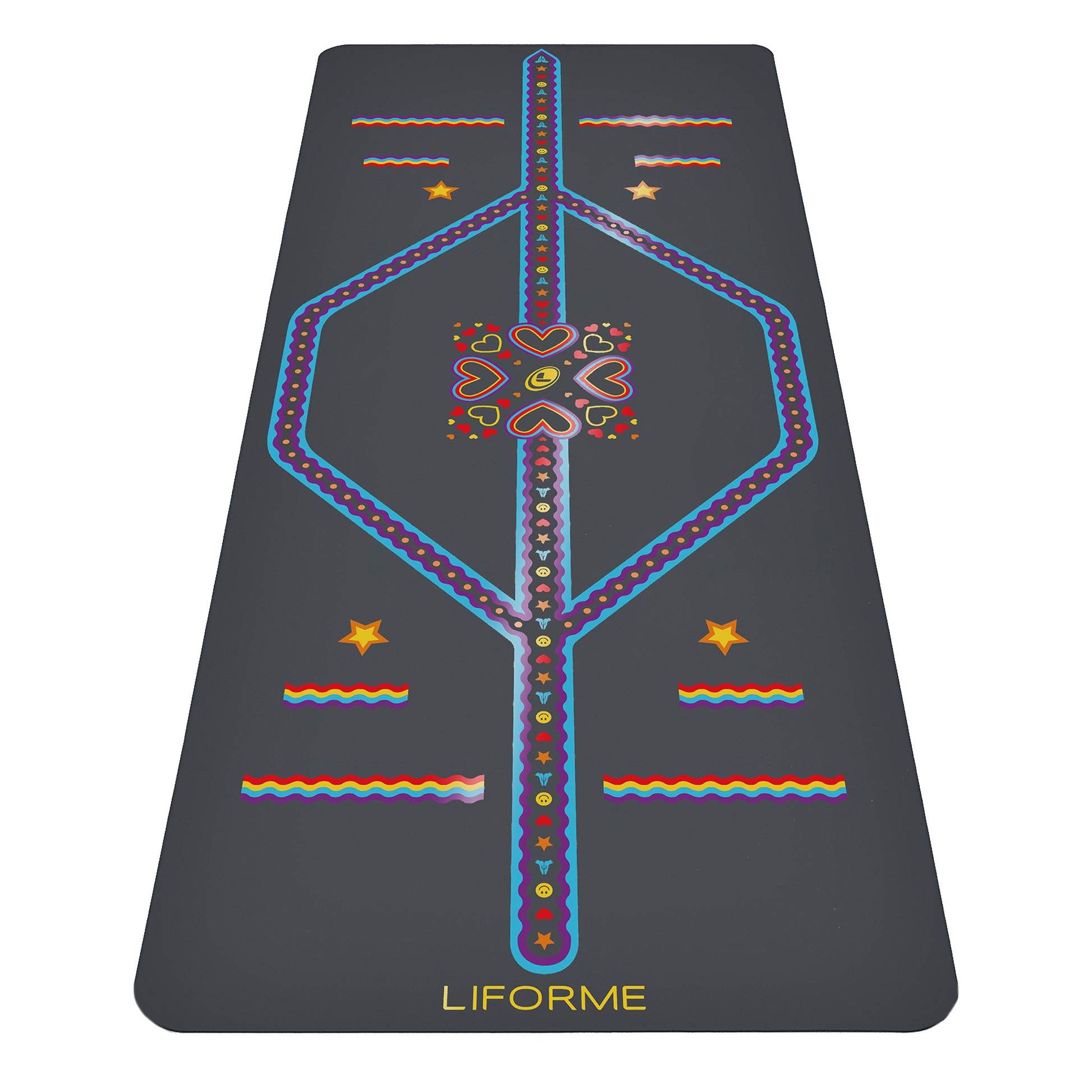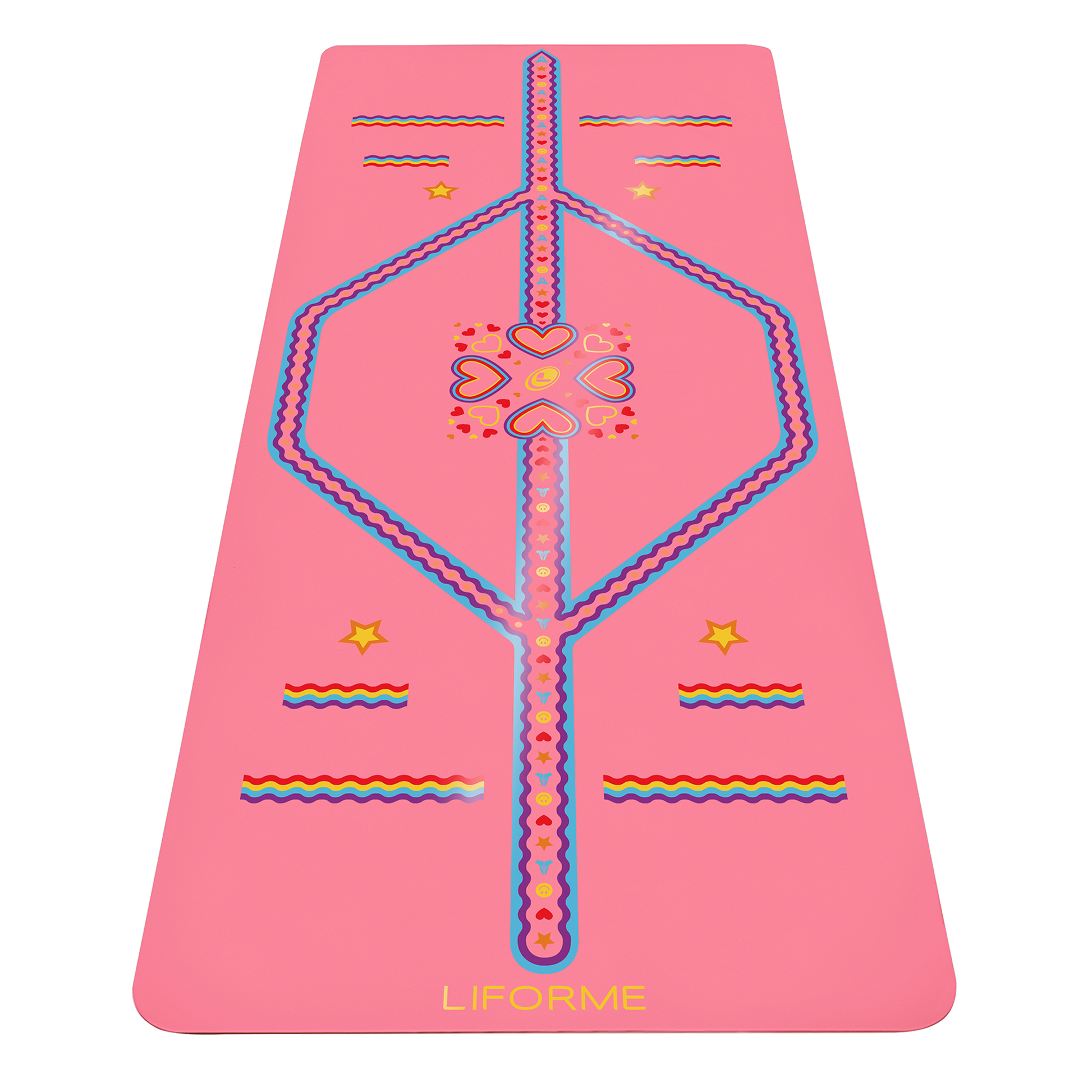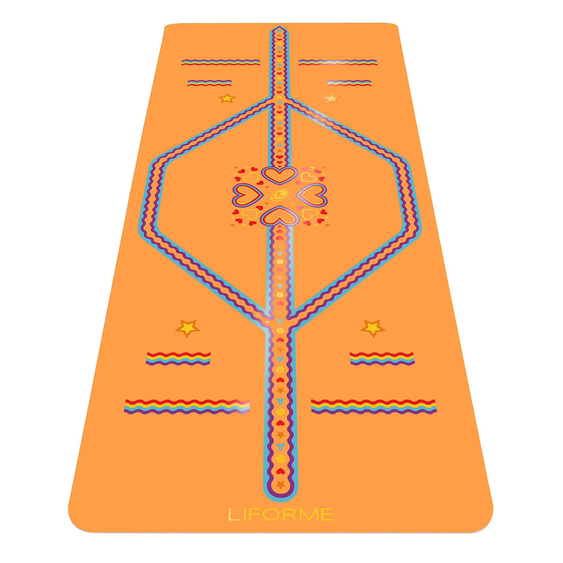 The Liforme Kids Playful Yoga Mats are recommended for kids up to 140 cm (4 feet 7 inches), available in 7 base surface colours each with a Playful printed alignment guide, which features hearts, stars, and wiggly rainbows. Planet friendly and non-toxic they are completely safe to touch, smell, and even lick (these things happen!).