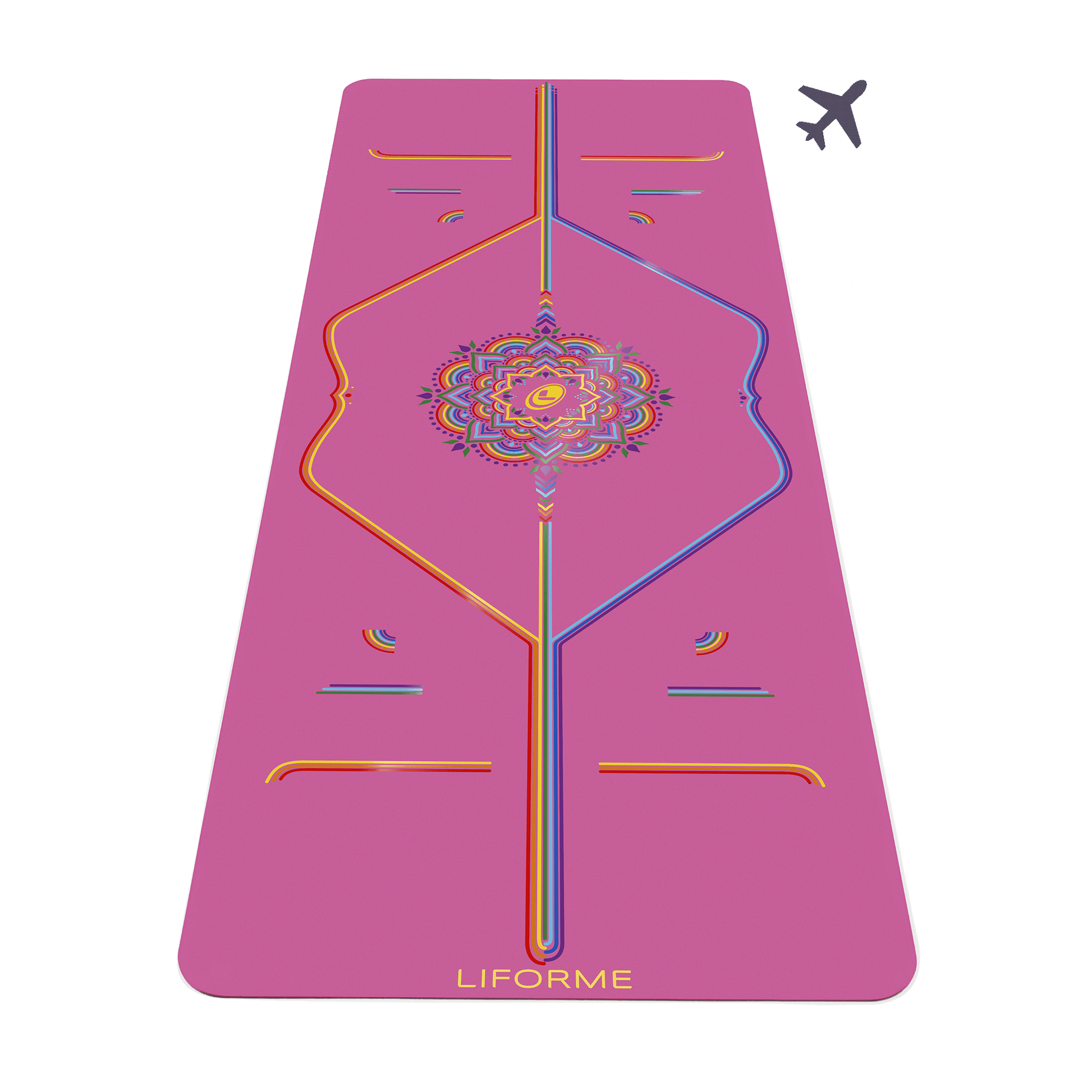 The Liforme Rainbow Yoga Mat features a bold and beautiful rainbow variation of our signature posture alignment design, available on vibrant Yellow, calming Blue, or uplifting Grateful Pink surfaces. Designed for Yogis of all shapes and sizes, the intelligent cues of the alignment system help you stay balanced and aligned, reducing the risk of injury and enhancing body awareness.