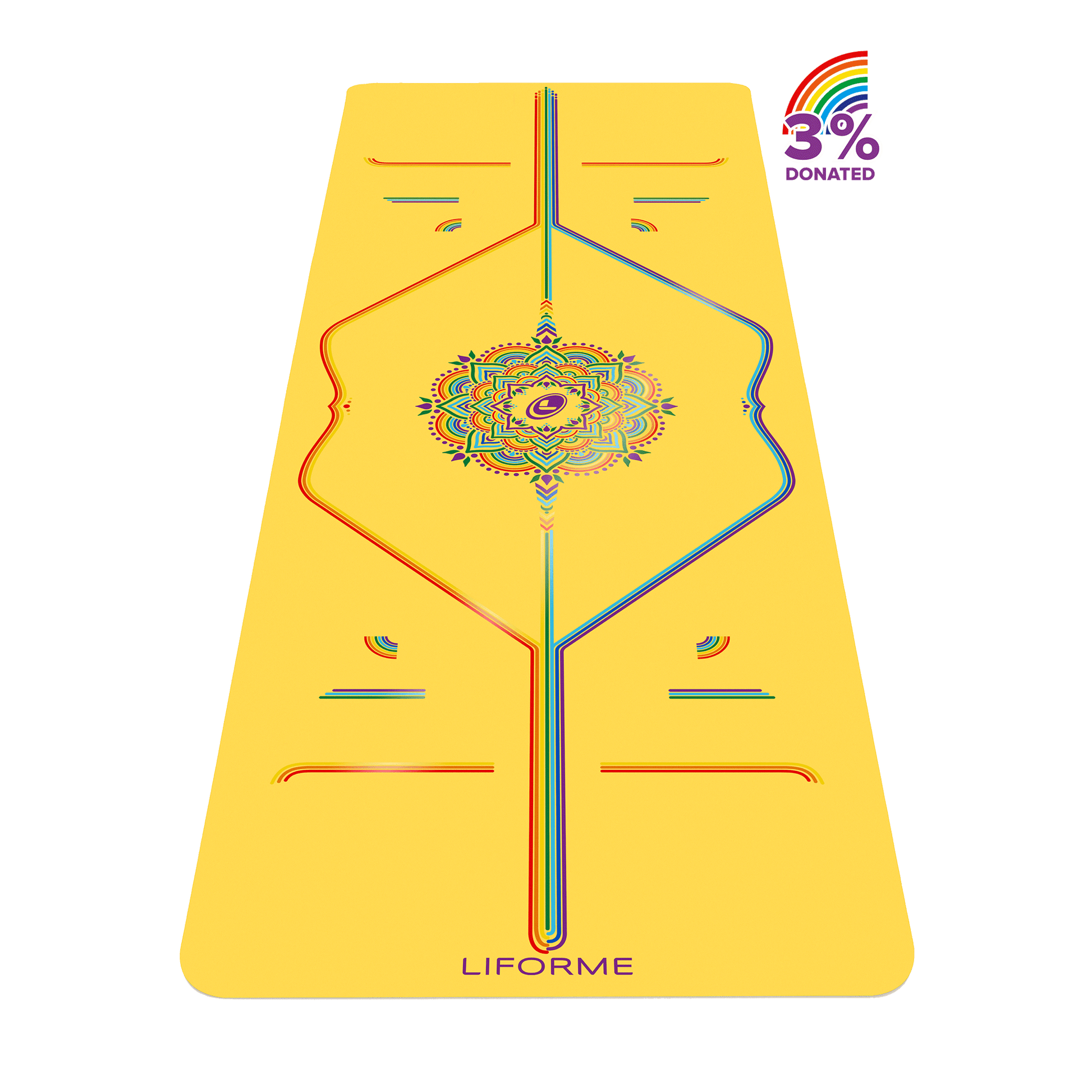 The Liforme Rainbow Yoga Mat features a bold and beautiful rainbow variation of our signature posture alignment design, available on vibrant Yellow, calming Blue, or uplifting Grateful Pink surfaces. Designed for Yogis of all shapes and sizes, the intelligent cues of the AlignForMe® system help you stay balanced and aligned, reducing the risk of injury and enhancing body awareness.
