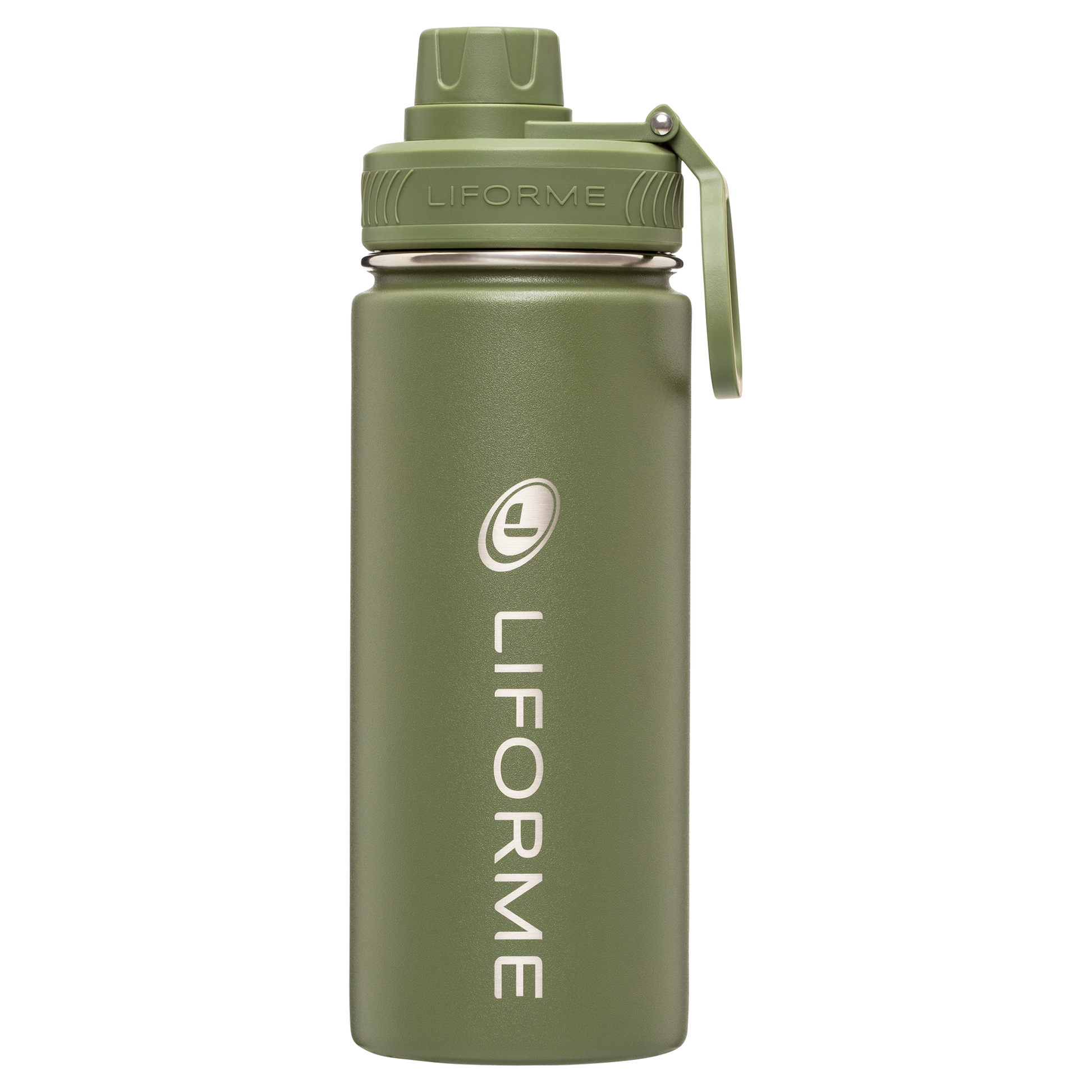 Truly Planet Friendly. Liforme’s water bottles make it easy to use less plastic. Choose from our two colours (olive, black) to find the one that’s perfect for your eco-conscious active lifestyle. Featuring a non-leak screw top, our vacuum-insulated stainless steel keeps your drinks cold (or hot) and tasting fresh. The double-walled design and textured surface make our bottles easy to grip, even if your palms get sweaty.